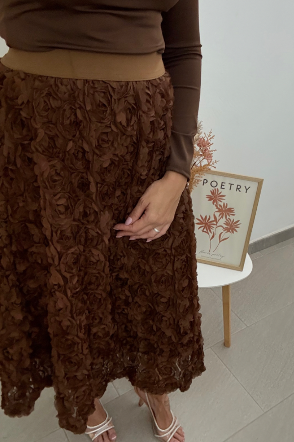 Es una falda que te hace sentir femenina y segura, perfecta para esas ocasiones en las que quieres destacar con estilo sin renunciar a la sutileza. Su caída midi añade un aire refinado y atemporal, convirtiéndola en una pieza imprescindible en tu armario.